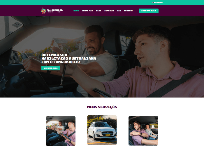 Site multi-idiomas para "canguruber" brasileiro que da aula de direção na Austrália.