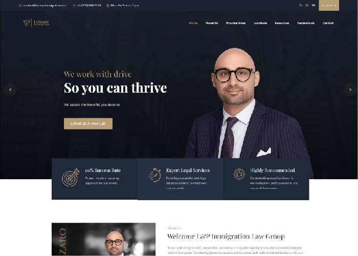 Site multi-idiomas para escritório de advocacia especializado em imigração para os Estados Unidos da América.